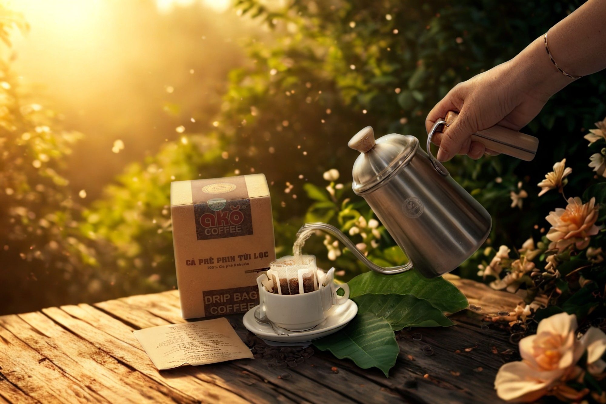 Cũng từ đây có một thương hiệu akŏ coffee đáp ứng nhu cầu tiêu dùng cà phê nguyên chất, các chuyên gia của chúng tôi đã rang và phối hợp giữa các hạt cà phê ngon nhất từ vùng đất Buôn Ma Thuột, Lâm Đồng, ĐăkMil… Và bằng quy trình kiểm soát chất lượng sản xuất nghiêm ngặt để cho ra loại cà phê nguyên chất 100% đặc trưng truyền thống dành cho những người sành cà phê thưởng thức và cảm nhận hương vị thiên nhiên của Ly cà phê Ban Mê.